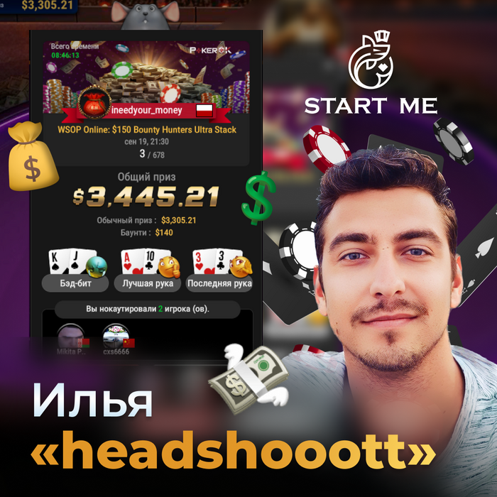 Хорошо прошла неделя и у Ильи. WSOP Online: $150 Bounty Hunters Ultra Stack Топ-3🥉 $3,305.21 + $140 2 нокаута🥊 на GG принесли в общем $3445 призовыми.💰 Хорошая работа!