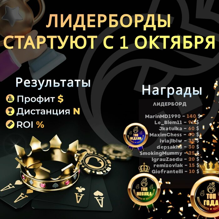 Наши лидерборды будут сопровождаться призовыми для лучших участников. Твои успехи и старания за покерными столами теперь не только в постах соцсетей, а ещё и в призовом эквиваленте.
