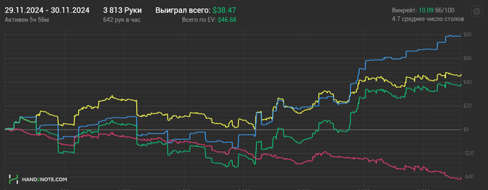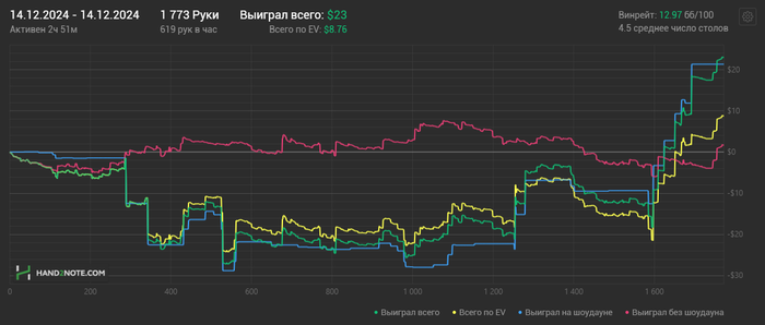 Результатом я , очевидно, доволен. Но в конце пошла уже не игра, а удержание вр по факту (в дневнике условием было сделать 8бб\100 по ев, но с другом заключили пари на 8бб\100 по зеленой. )