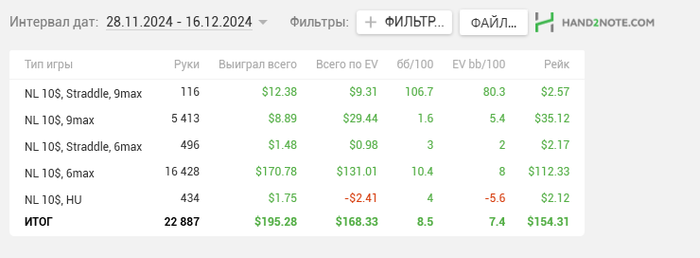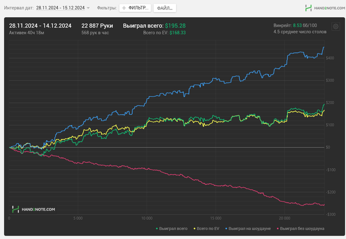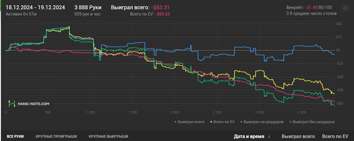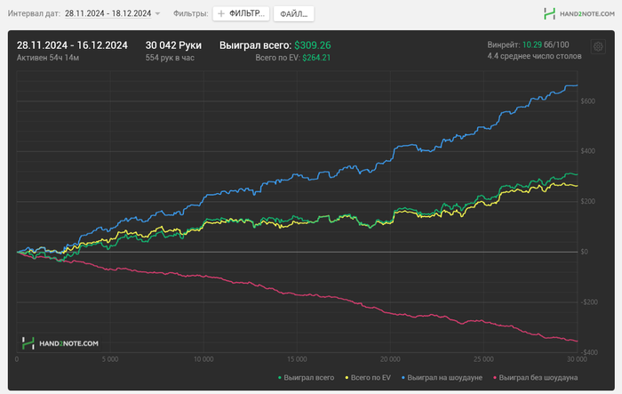 Условия: я откатываю до конца года 45к рук с винрейтом по ЕВ в 8бб/100 или выше. Если винрейт будет ниже - я перевожу одному из пользователей, которые лайкнут эту запись 30юсдт. Также перевожу деньги, если не откатаю 45к рук.