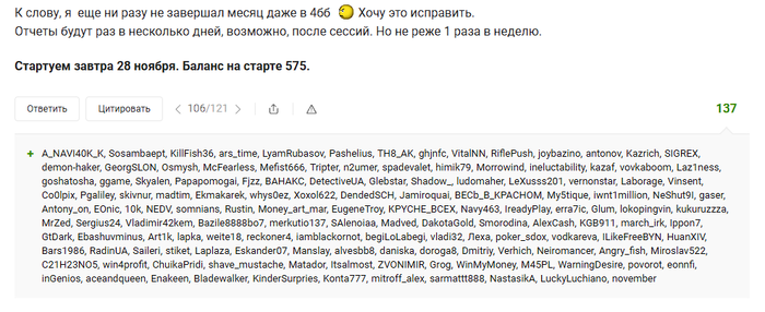 Стартуем завтра 28 ноября. Баланс на старте 575.