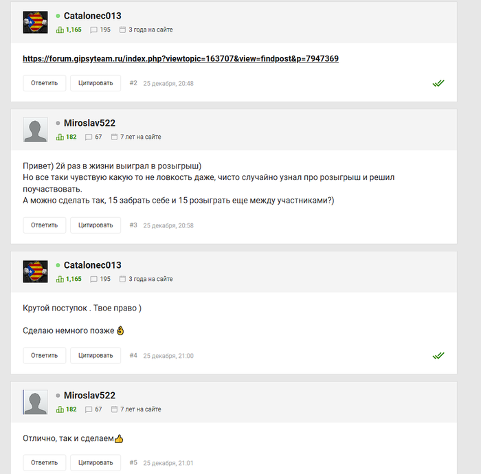 Друзья, Мирослав был рад поучаствовать и выиграть в нашем "конкурсе", а также он решил разделить эту радость еще с одним рандомным участником и поделить свой приз пополам👍