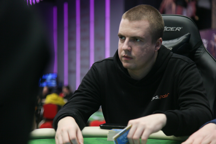 Следом олл-ин коротким стэком выходит Полосьмак Максим 4,200М, его встречает Колотюк Роман