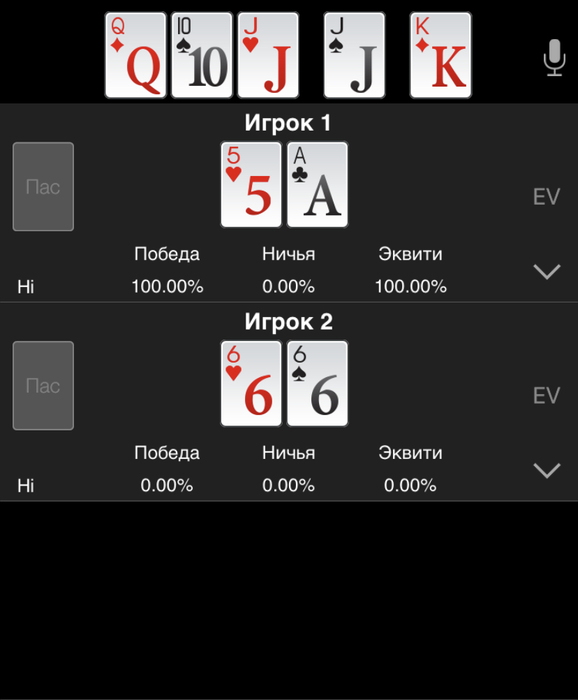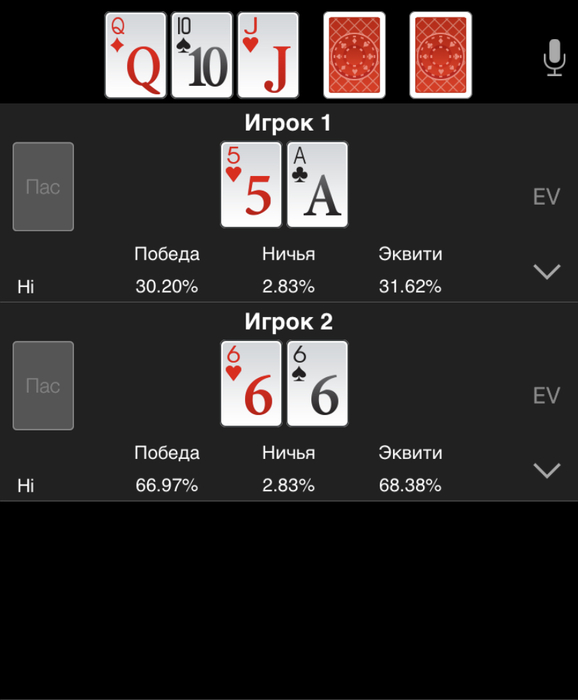 За 10м столом олл-ин колл на префлопе. Встретились Пилль Леонгард (BTN) и Гвоздев Евгений (SB)
