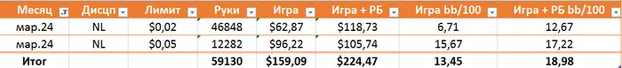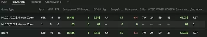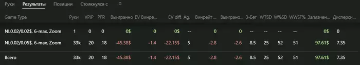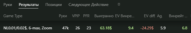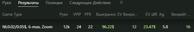 По игре: +18,96$ (1,5бб/100)