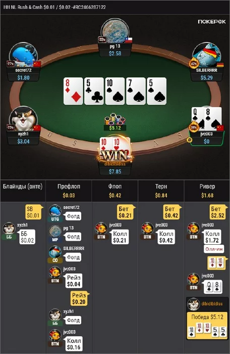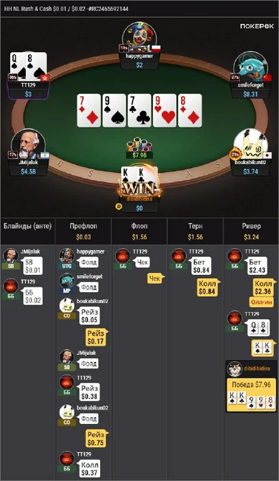 Не буду углубляться в то, что пуш отбивают только стриты да сеты (ну может AQ. Плюс у тех, кто не стремается кетчить на стек).