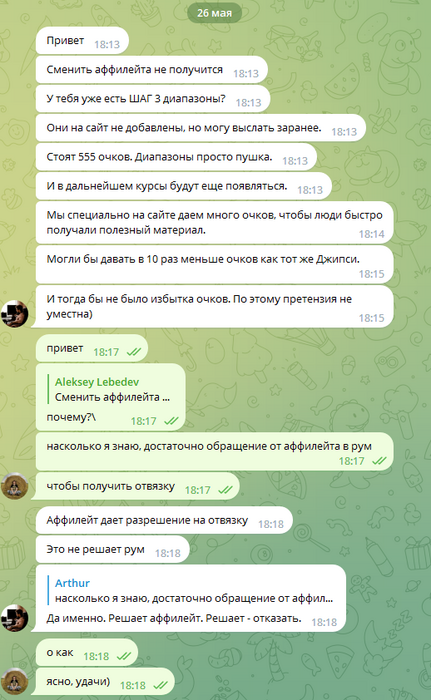 Спустя пару часов, мне пишет сам Алексей и говорит, что отказывается отвязывать меня.