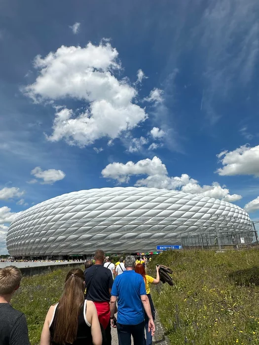 После округа Гессен мы поехали восточнее, в Мюнхен, на первый матч. Альянц арена показалась самым современным стадионом из трёх. Много больших экранов, где можно посмотреть повторы моментов, удобно добираться до своего места. А вот снаружи вживую мне не оч зашло. Какие-то некрасивые пупырышки и в поле где-то находится. На фотках мне больше нравилось. Может ещё сказалось, что матч был днем, а смотреть на неё нужно после заката.