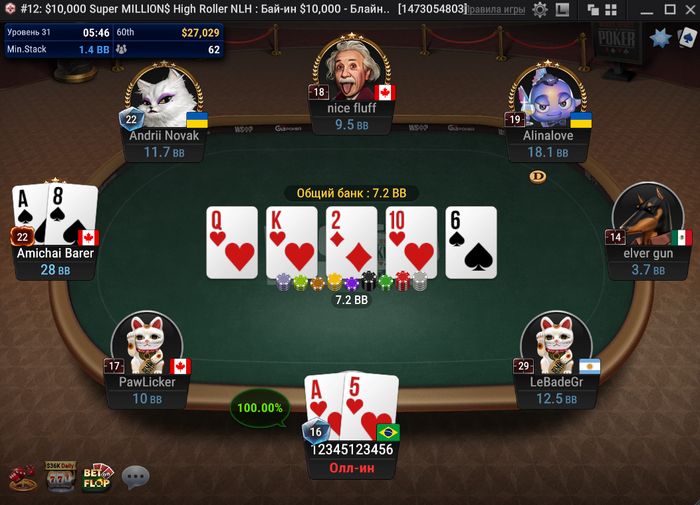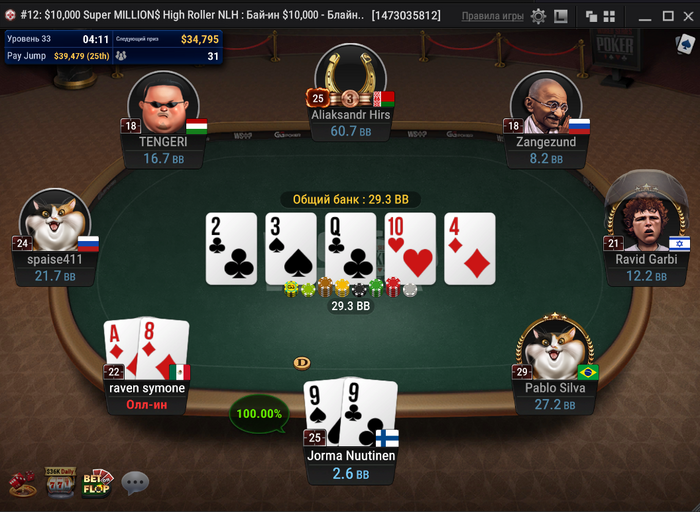 Wohooooooooo запушил с катоффа в меньшие стеки. spaise411 в этот раз не стал расставаться с и удвоился.