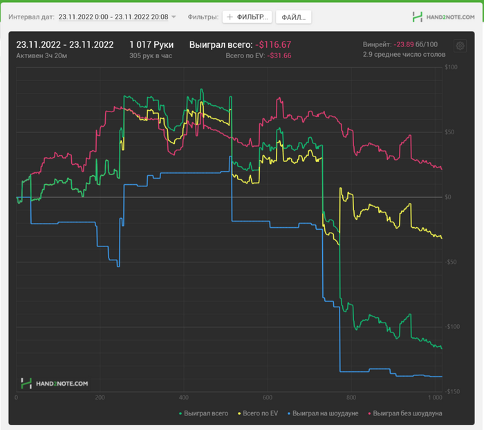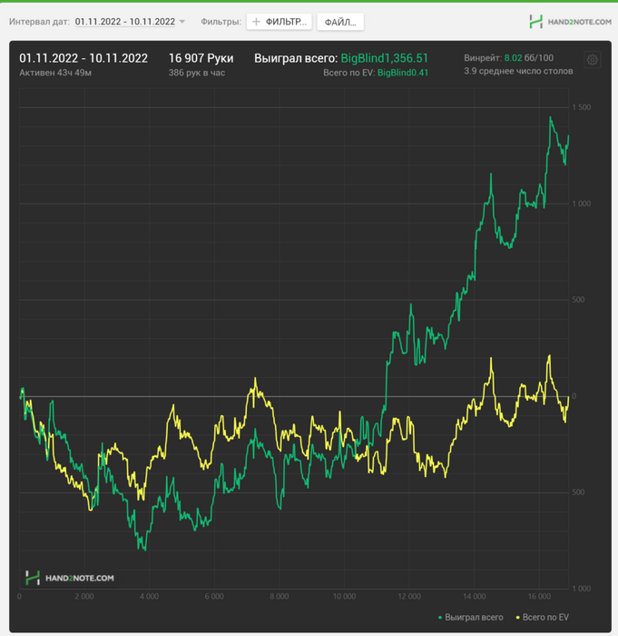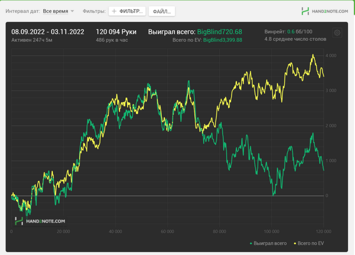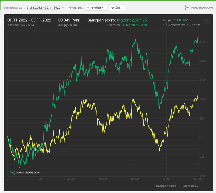 Месяц получился какой-то ниочемный: на верхнем не сложилось, покеру уделил мало времени, в конце месяца еще и приболел (ну как приболел, умирал, как настоящий мужик с температурой 36.6 и небольшим насморком), заставил себя кое как докатать до 60к рук.