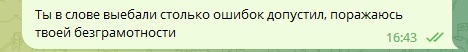 Не буду описывать лютрый треш, который он демонстрировал в общении, в телеге.