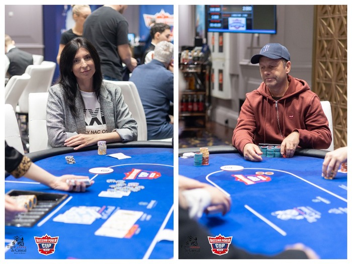 Колотюк транзитом через стойку регистрации вернулся за тот же стол, а Людмила Морозова, у которой был короткий стек после проигрыша с девятками, к сожалению, покинула турнир спустя несколько раздач. Из девушек осталась только Зарина Кадыева.