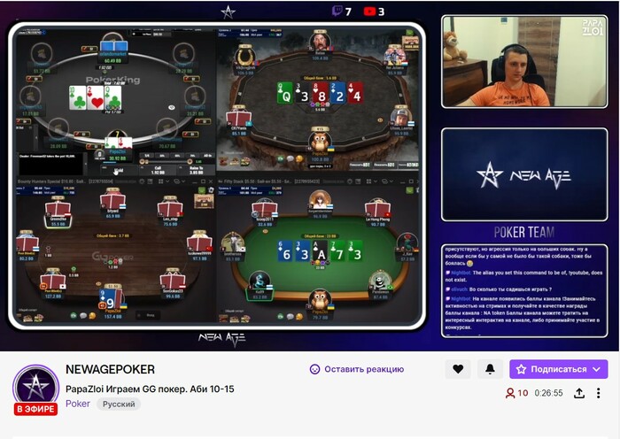 Хей! NEWAGEPOKER запустил вещание на канале. Присоединяйся!