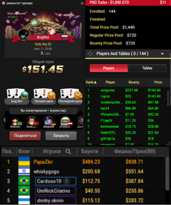 💥swigorn становится первым в турнире PKO Turbo - 1,000💲 GTD и зашибает на этом 377💲