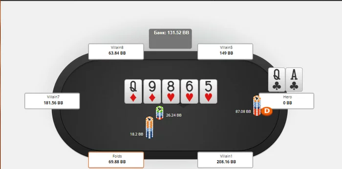 - начинает считать комбы блефов, против которых хочет колоть😃