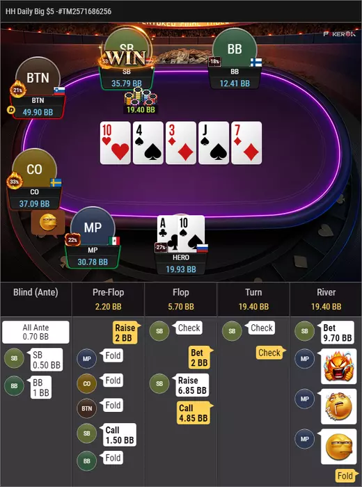 Твой розыгрыш ужаснее, у тебя нет вменяемых усилений для такого СПРа, какая бы стадия турнира не была если колим тёрн колим ривер. Полагаться на то что ривер не доблефовывают это бред. Или пас тёрн или колл (пуш) до конца.
