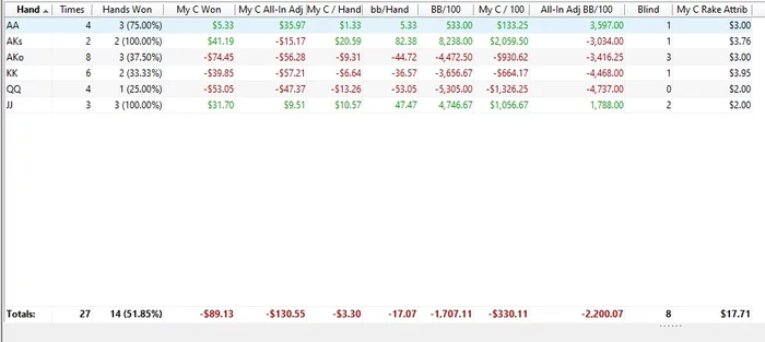 Правда очень жестко не везет с выставлениями префлоп, очень часто в натсы попадаю без фолдов в 5бет пуше, при том что пушил даже без блефов...