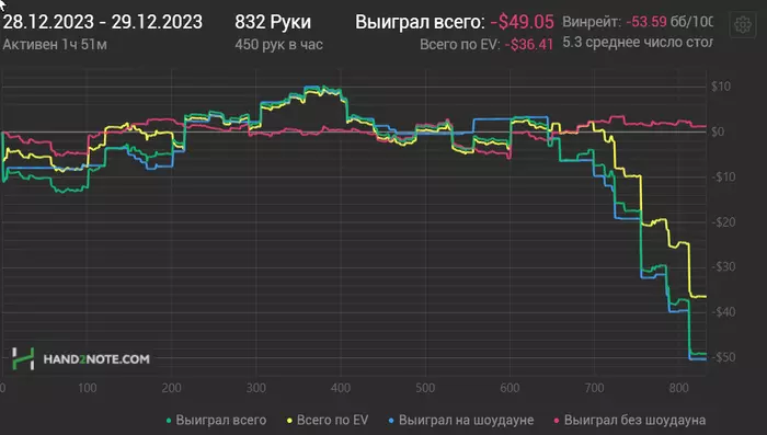 Да уж,удивительно,как отрезки даунсвинга убивают веру в собственные силы...Ладно,фиг с ним,на пару долларов удержался в плюсе по итогам месяца.А это значит,что пока в кэш-покере у меня ещё не было минусовых месяцев 🤭🤭🤭 Как говорится,ищем позитив даже в куче навоза)