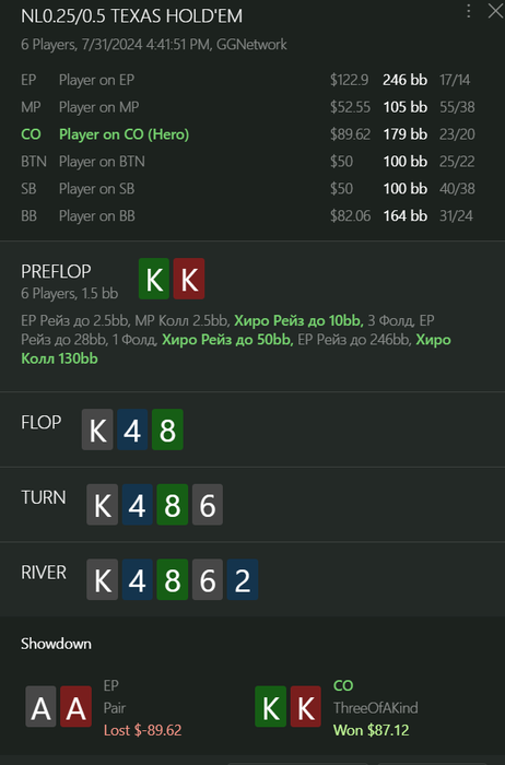 hqegor, Да не, это рег, причем нитом был помечен, да понятно, что с фолдов норм винрейт, у меня просто обычно стопа нет, там либо 3 либо ни одной, ну и не сказал бы, что челам похуй, просто в целом на его месте, AK не все бы заколили, а это по сути близко к обязательному колу