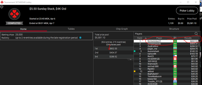 Две финалки имею за 30 дней , где КК сверху префлоп не стоят, в одной под 1700 у.е. разница между 4 и 1 (в итоге, спейс Веника), вторая типовая низко афс-ная.