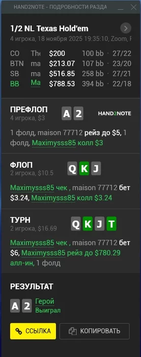 Вот такую прикольную раздачу сыграл, захотелось её кому то показать