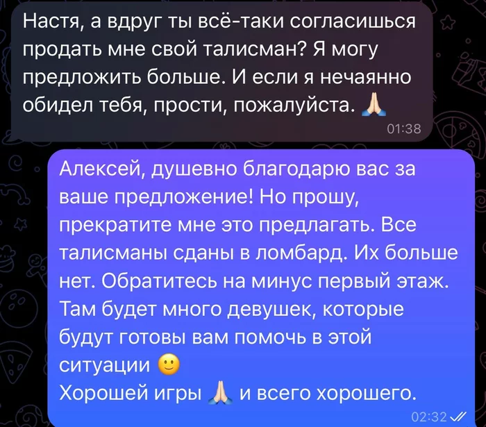 И он мне показывает наш диалог.