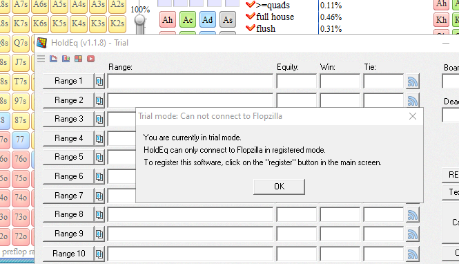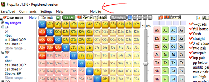 На всяких разборах/обучающих видео вижу, что у других Flopzilla показывается в более удобном формате, когда мы можем забить диапазон двух и более игроков: