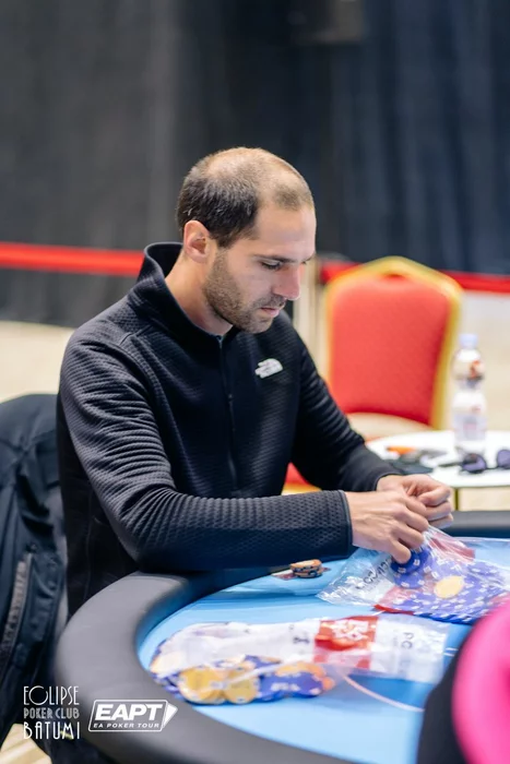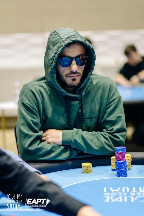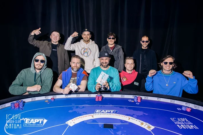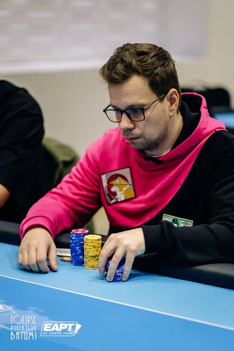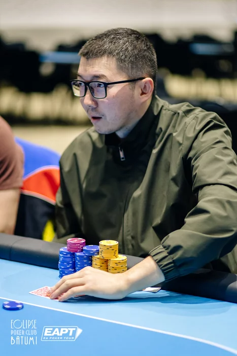 Эпичная раздача произошла за финальным столом. Игроки выставились префлоп. Yeghiazaryan Eduard со стеком 430к с , Antipin Leonid со стеком 810к и , и Kvinikadze Ivan с . Leonid уже успел расстроиться, но спасительная десятка пришла по флопу.