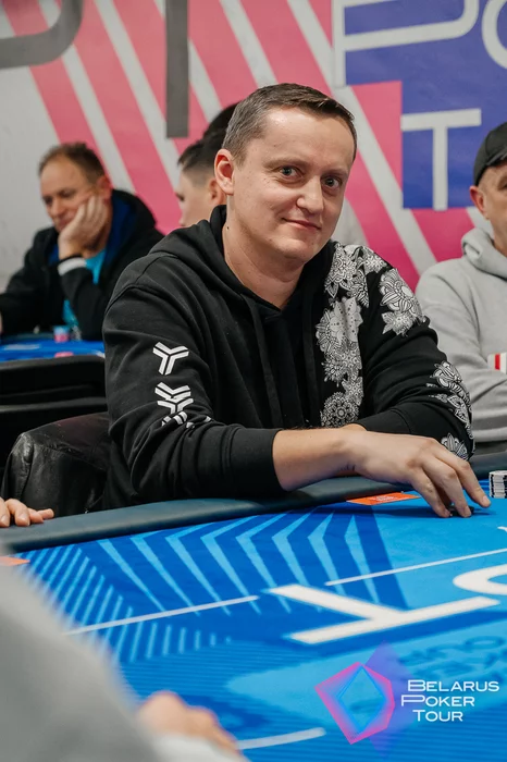 Сразу же следом раздача за этим же столом. Александр Пахомов запушил первым из средней стек 67к. Антон Иванов на секунду прервал беседу с соседом по столу и сказал «свой олл-ин». Дмитрий Кирилюк — тоже колл.