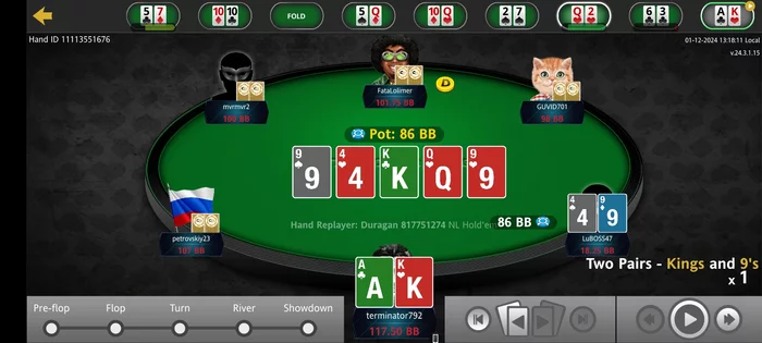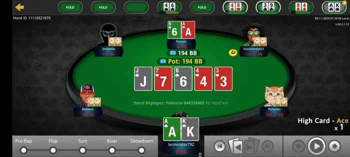 f8ck_swag, это не выход, нужно к этой бототне, как то подстроится, может как их вычислять, по сайзу, они начинают ни с того ни с чего овербет наваливать, а когда раздачу смотришь, он его на пустом месте ставит, а потом ему доезжает, незнаю, ребята программисты серьезные вещи написали, мне с моим интеллектом, тяжело их переиграть, у них мощности огромные, они нас просчитывают на раз два, каждое наше действие и движение