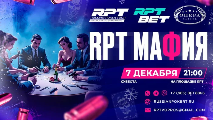 Готовимся спасать мир от коварных планов мафии! Все желающие поиграть записываемся на форуме RPT в телеграм в разделе «Активности», ссылка на форум — https://t.me/russianpokertour2024/461.