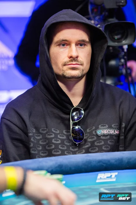 По чуть-чуть отдал фишки в бокс Алексея Казака Александр Жолнерчик. Но потом смог удвоиться снизу с в Максима Мирошниченко.