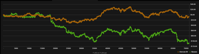 Может я ошибаюсь, но я смотрю у себя недобор на графике. Сравниваю линию EV и зеленую-профит. Тут есть ребята с лучшим опытом, чем я. Может я не там смотрю. Буду рад если меня поправят.
