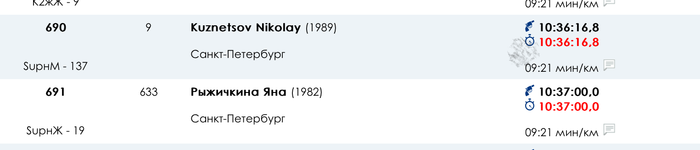 deviltoxa, да, на пол часа быстрее меня. Но он готовился два месяца очень серьезно, да и в целом - не пьет, не курит. В тексте забыл про него рассказать)