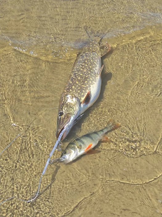 Вечером решили отправиться на рыбалку и разделиться. Нас с Антоном перекинули на другой берег в протоку и мы на весельной лодке шли по течению, а они втроем пошли троллить. Мы сплавлялись часа два, видели бобра, выдру, летучую мышь и сумели поймать 3 щучки и окушка - всех отпустили. Ребята ничего не поймали.