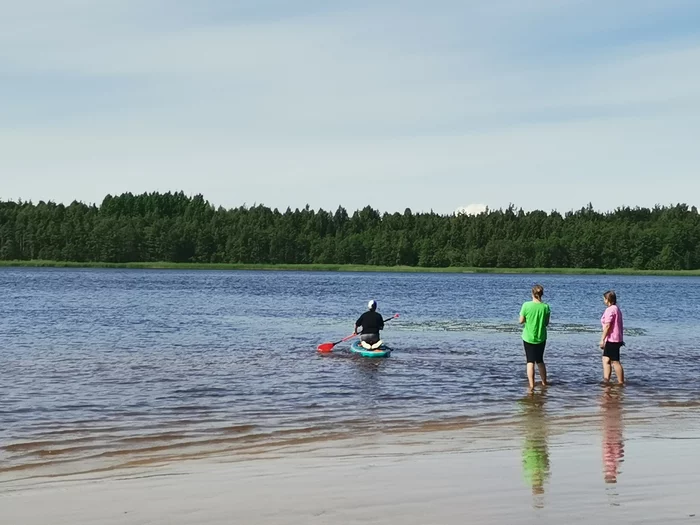 Посидели, покушали, выпили, позагарали. Решили надуть сапборд, я его с собой привез.