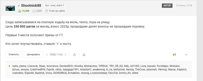 А пока, я придумал для себя челлендж. Шутник у себя в блоге объявил об интересной активности - нужно пройти 250к шагов в месяц. Я сомневался, вписываться или нет, но решился только что и поставил "+".