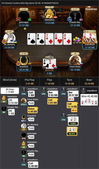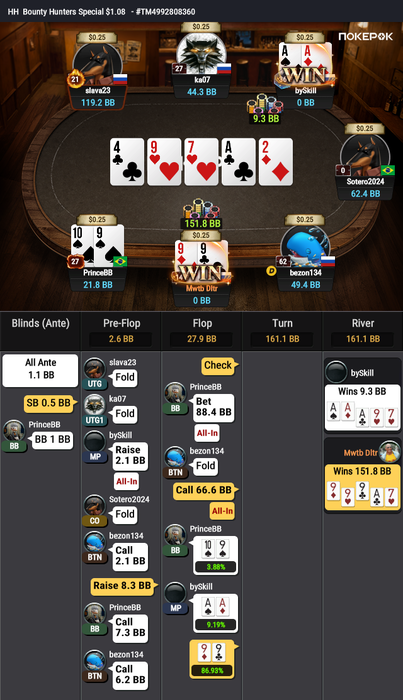 А еще рядом сидел чипак Yaroslav_Yama, который отбивал с любой рукой, где есть буквы A, K или Q, в ста случаях из ста.