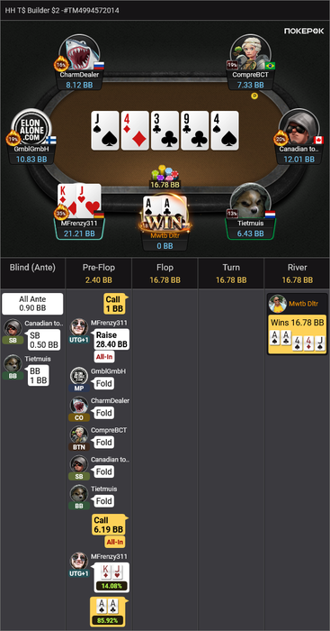 Ну, знаете эти сверкороткие финалки билдеров с average stack 12bb, где ты сидишь пятым из восьми.