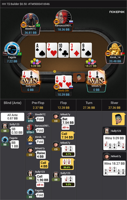 Это все происходит в 20-max, и средний стек около 13bb.