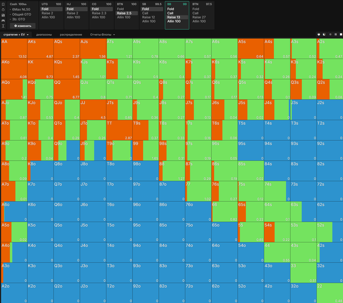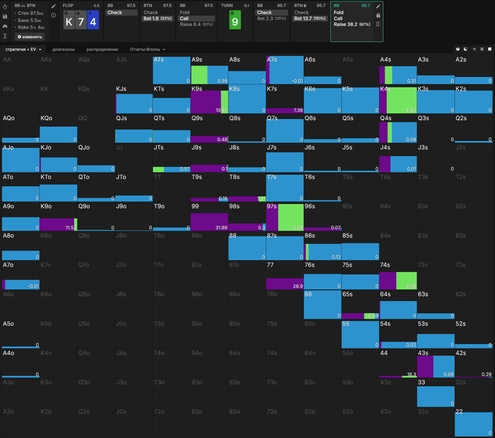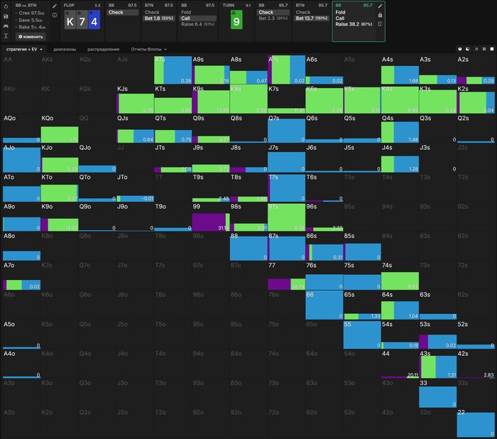 чек все АА+АК, чтобы не выбивать очень много у ББ. Зато очень много рук без дро проставляют и кайфуют. Но на практике никто так делать не будет.