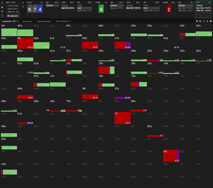 Лучшая реакция = эксплоит против такой страты) К5с идут в фолд сразу. И вот понять это. Как кого можно эсплоатить, а не задрачивание ГТО тренажера даст больший буст, на мой взгляд. Конечно если твои соперники не мастера аджаста и контр-подстроек. Но вопрос тогда, что они делают на нл10? Правильно, нет там таких мастеров;)