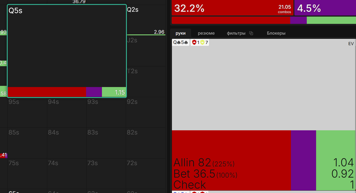 Просто посмотрели солвер. Ага на ривере надо жать колл с К5с в 75% чтобы не дай бог меня не заэксплоатили боги ГТО на нл10)