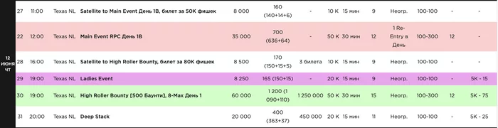 В 19:00 стартует Ladies Event с бай-ином 165 у.е. и уровнями по 15 минут