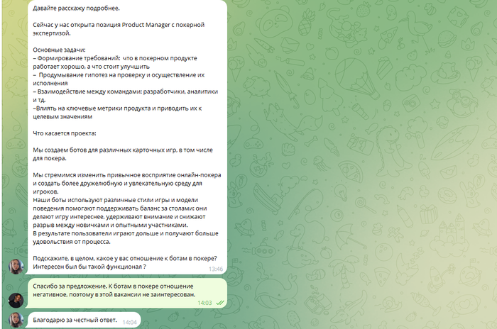 Из интересного, что произошло за последние дни, вчера получил сообщение в тг с таким предложением: