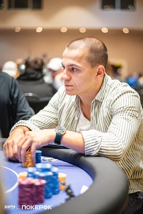 Первым вылетел игрок с самым коротким стеком - Dmitrii Baburin. Ему досталось 9 место и $1,625 призовых.