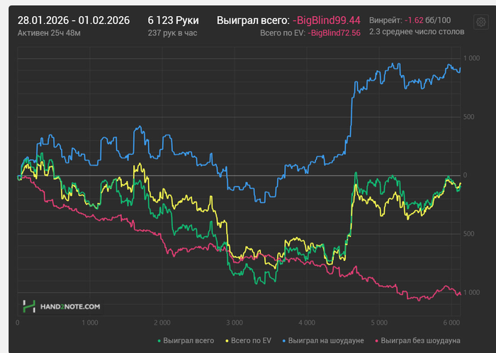 катка: -223$ (90$ выиграл на 1вин) 700 рук +-