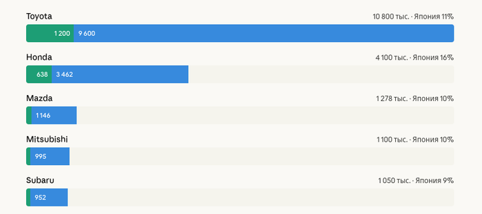 Тойота вообще то крупнейший производитель в мире. Ничего удивительного что в Японии это более выпукло. Половина японского рынка все равно не вся Япония.