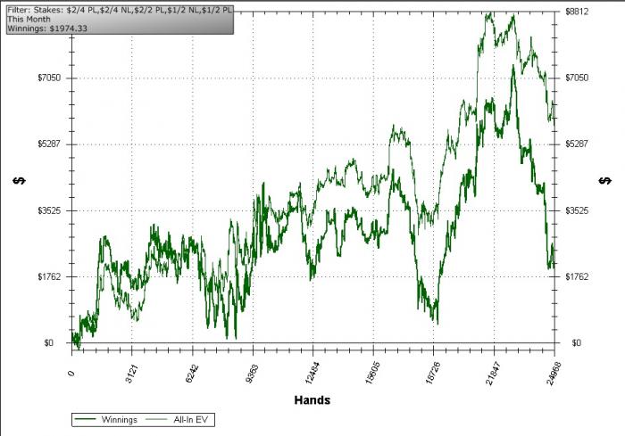 Ну да ладно что-то я не в ту степь ушёл.... ваше здоровье (дрямс). Так вот, месяца 4 назад я имел самый большой свой БР (пока что) в районе 350к , сейчас 10к. Понятное дело что без тильт игры тут не обошлось , шевелить по пьяни 50-100 как-то не логично впринципе , хотя и тогда со мной в онгейме садился играть только 1 или 2 рега ХА что очень радует в плане того что я и туда вроде гожусь может. Вообщем словив за один день -107к , а через 2 дня ещё -70к я как следует повредил не только нервную систему, но и БР :) Вообщем в итоге имеем что имеем. Будем восстанавливаться, вчера наконец-то купил себе ХМ, пытаюсь вот его поставить на ноут, ибо комп тупо полетел, да и много я очень времени провожу в поездках играя турики и просто отдыхая ( хотя скорее первое ).Играть будем маленькие лимиты, но всё равно надеюсь вам будет интересно. Пока все деньги на ПС , думаю что начну с 3ёх сайтов: ПС / онгейм / айпокер. ФТ пока исключил вот почему: