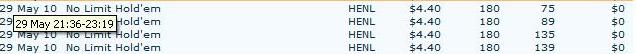 30 May 10 No Limit Hold'em * HENL $4,40 180 10 $8,64